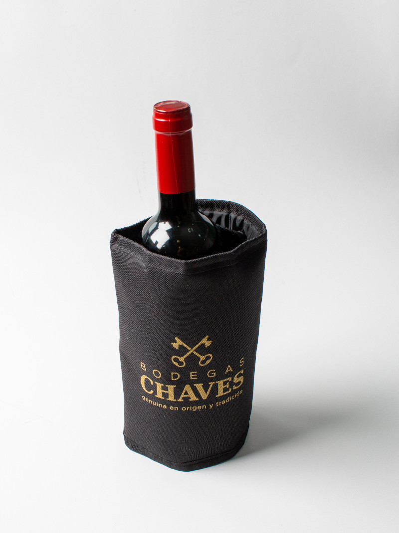 Manga enfriadora, sistema de cinta antideslizante, evita la caída o deslizamiento de la botella, doble gel enfriador efecto nieve flexible, extraíble. Color negro.