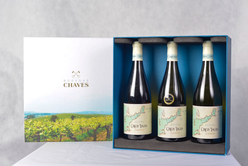 Estuche de altísima calidad con el premiado vino Cinco Islas.