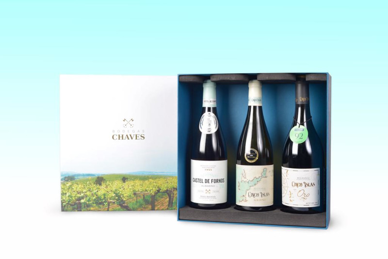 Toda la gama de albariños de Bodegas Chaves en un estuche de máxima calidad.